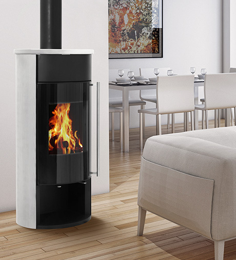 Ob in Naturstein, Keramik oder Stahl – die fünf edlen Verkleidungsvarianten bieten Spielraum für jeden Einrichtungsstil. Der praktische Holzstauraum, der kühle Edelstahltürgriff und die präzise Luftsteuerung machen die Bedienung dabei besonders komfortabel.