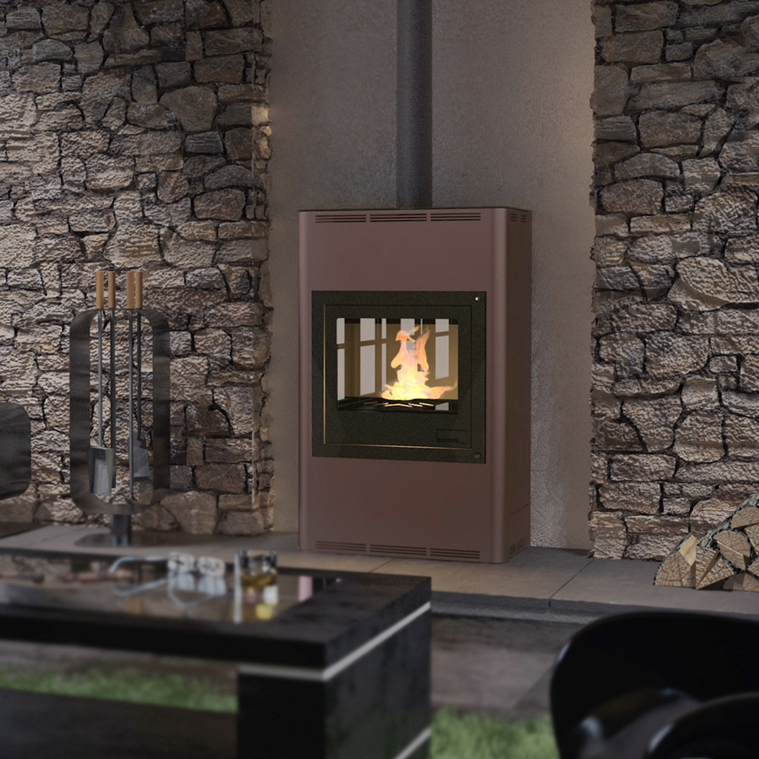 Aquaflam 25 Basic wird mit einer Verkleidung aus braun lackiertem Stahl geliefert. In unserem Shop erhalten Sie auch die Varianten Black, Grey oder Creme.