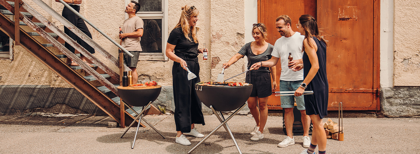 BOWL setzt neue Maßstäbe für das Outdoor-Erlebnis. Die elegante Halbkugel bietet nicht nur eine Feuerschale, sondern auch die Möglichkeit, sie mit Grillrosteinsätzen, Plancha oder anderen Zubehörteilen für kulinarische Genüsse zu erweitern. Dank des cleveren zweistufigen Ventilationssystems wird das Feuer effizient und raucharm betrieben. Die BOWL lässt sich flexibel auf einem Sternfuß oder Dreibein platzieren und kann bei Bedarf sogar in eine Outdoor-Küche integriert werden. Nach dem Grillen verwandelt sie sich in einen eleganten Beistelltisch. BOWL sorgt für unvergessliche Abende – sei es beim Grillen oder als gemütliche Lounge-Atmosphäre rund um die Flammen.