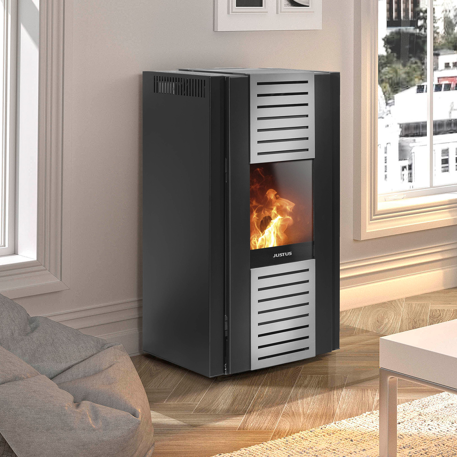 Justus Sirkos Aqua 2.0 Wasserführender Pelletofen Stahl Schwarz