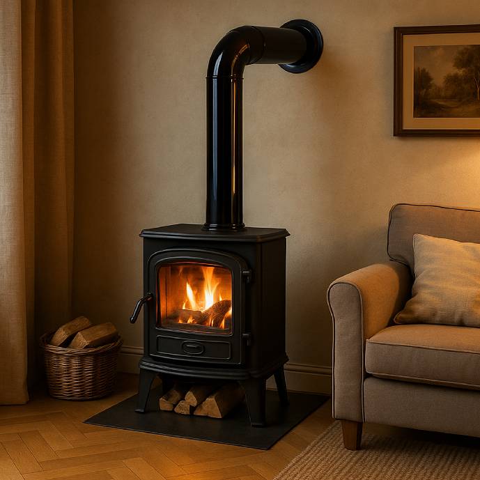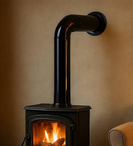 Einwandige Rauchrohre von raik sind die klassische Wahl für den sichtbaren Verbindungsbereich zwischen Ofen und Schornstein – also für die Strecke, die offen im beheizten Wohnraum verläuft. Da die Abgase in diesem Bereich noch sehr heiß sind und der Raum selbst beheizt wird, kühlt das Rohr kaum ab. Kondensatbildung und Zugprobleme spielen hier in der Regel keine Rolle.